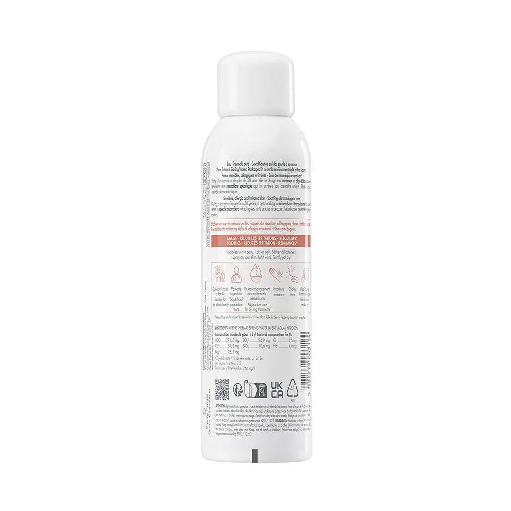 Az Avène Termálvíz spray nyugtatja, erősíti és helyreállítja az érzékeny vagy irritált bőrt, amely olyan kellemetlen tüneteket mutat, mint a bőrpír, viszketés vagy feszülés.