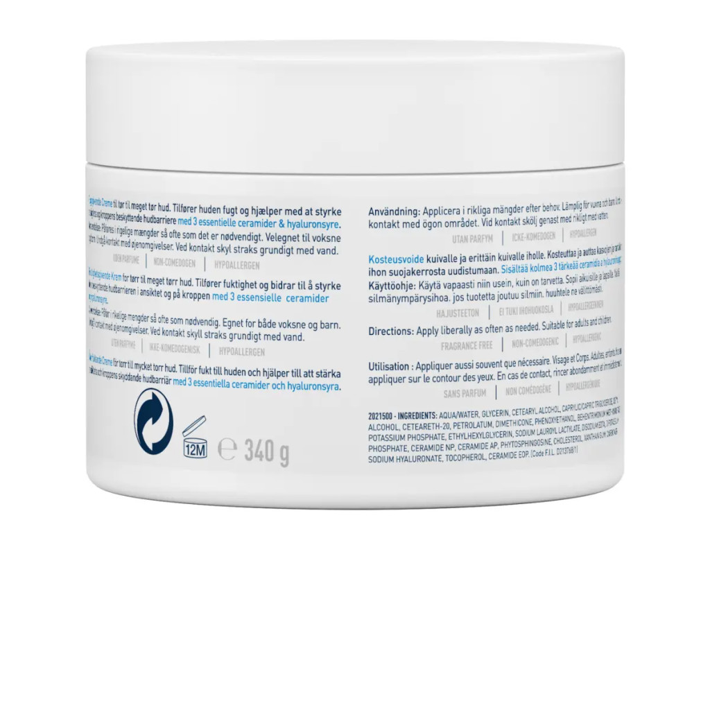 Tápláló hidratáló krém arcra és testre hialuronsavval és ceramidokkal száraz, nagyon száraz bőrre.