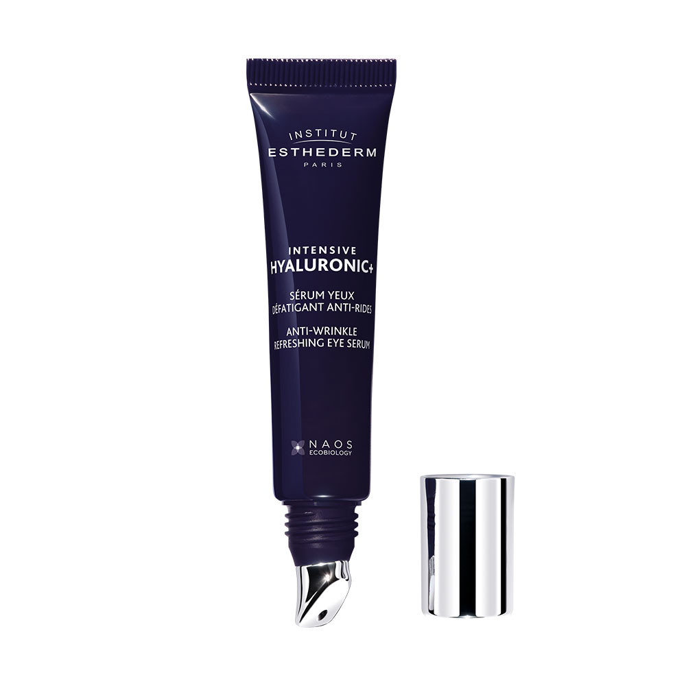 A hialuronsav a bőrben természetesen megtalálható molekula, amely elengedhetetlen a bőr fiatalos megjelenéséhez. Az Institut Esthederm a hialuronsav három formáját kombinálja a poliglutaminsavval, ezáltal a bőrben lévő hialuronsav mennyiségére és minőségére egyaránt hat. Az ultra-hűsítő zamac applikátor segít csökkenteni a sötét karikákat és a szem alatti duzzanatot.
