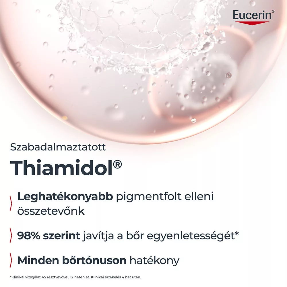 • Kevesebb sötét folt: A szabadalmaztatott Thiamidol hatékonyan csökkenti a sötét foltokat és megelőzi újak kialakulását minden típusú sötét folt esetében*, így egyenletesebbé teszi a bőrt. *Legyen szó a bőrt érő napfény, hormonális változások, akne vagy öregedés miatt kialakult foltokról.