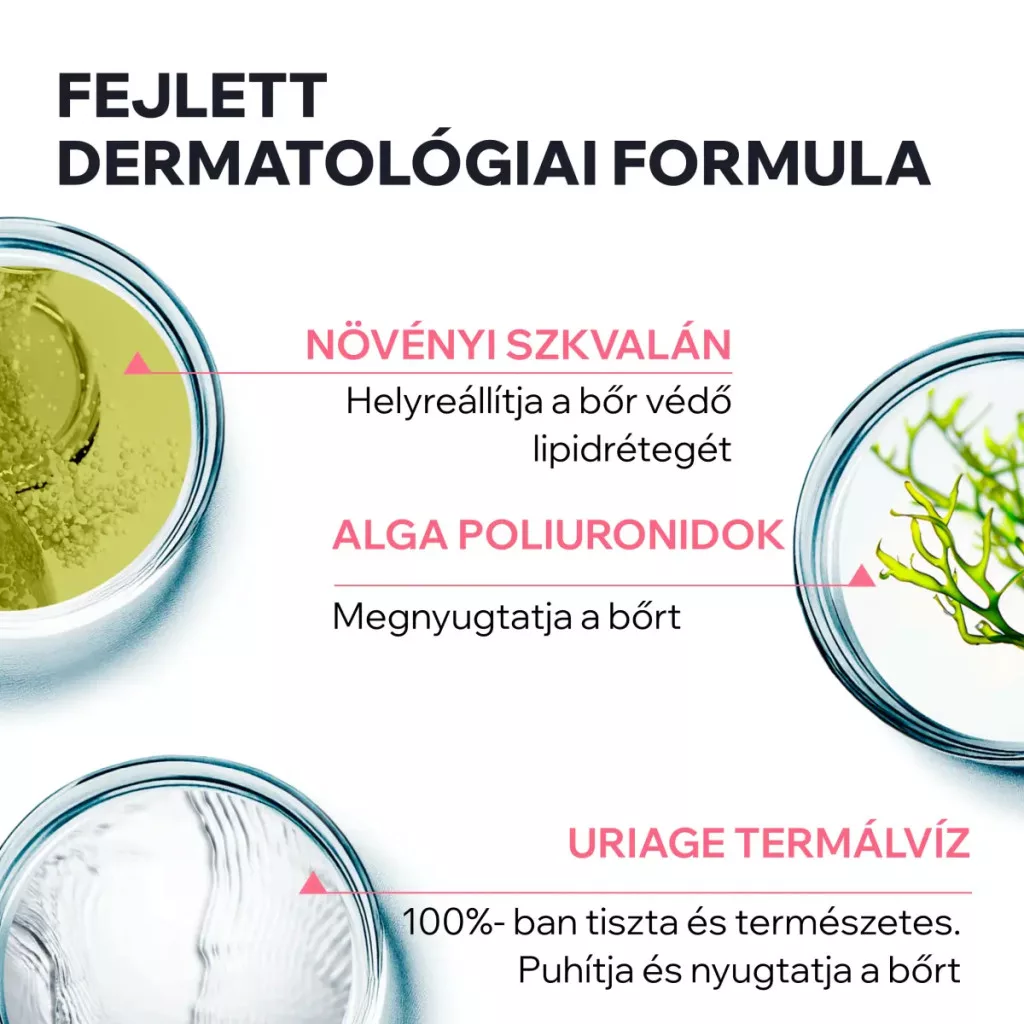 Aktív összetevők: ALGA POLIURONIDOK + SZKVALÁN + GLICERIN + Uriage Termálvíz